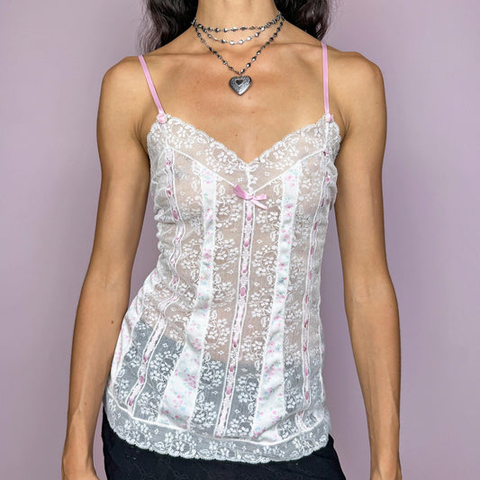 Vintage 90s White Lace Floral Cami Top – Size M