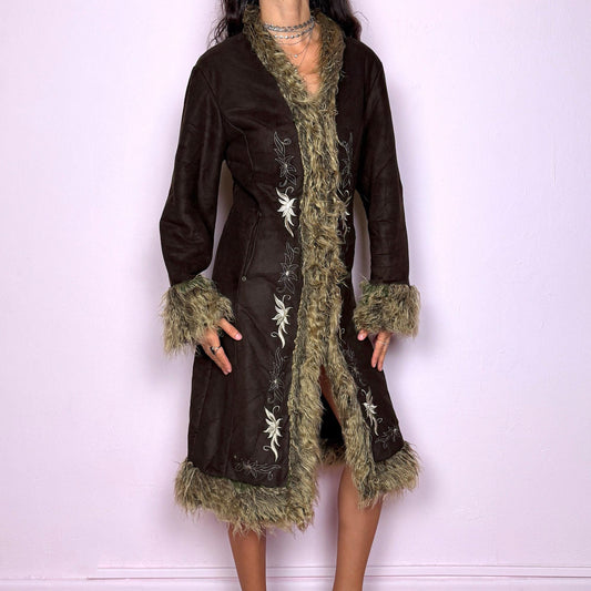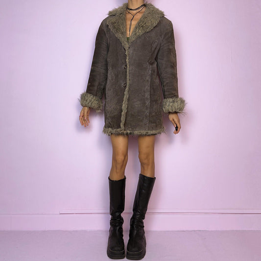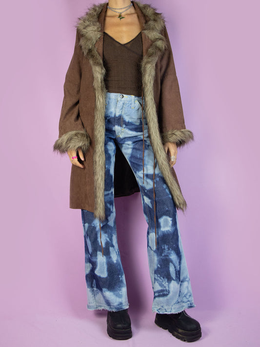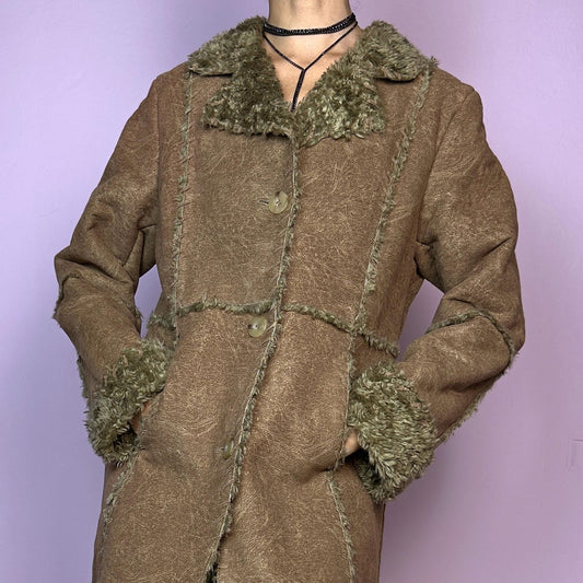 Vintage Y2K Brown Faux Suede Fur Long Penny Lane Coat – Size S