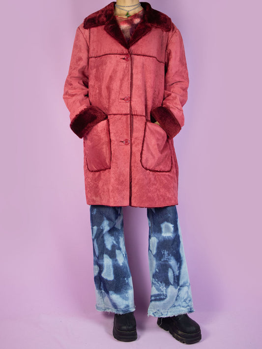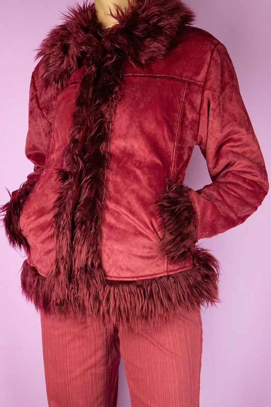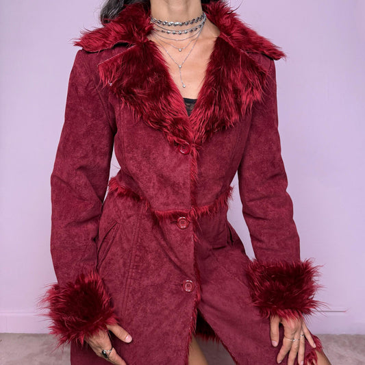 Vintage Y2K Red Faux Suede Fur Penny Lane Coat – Size M