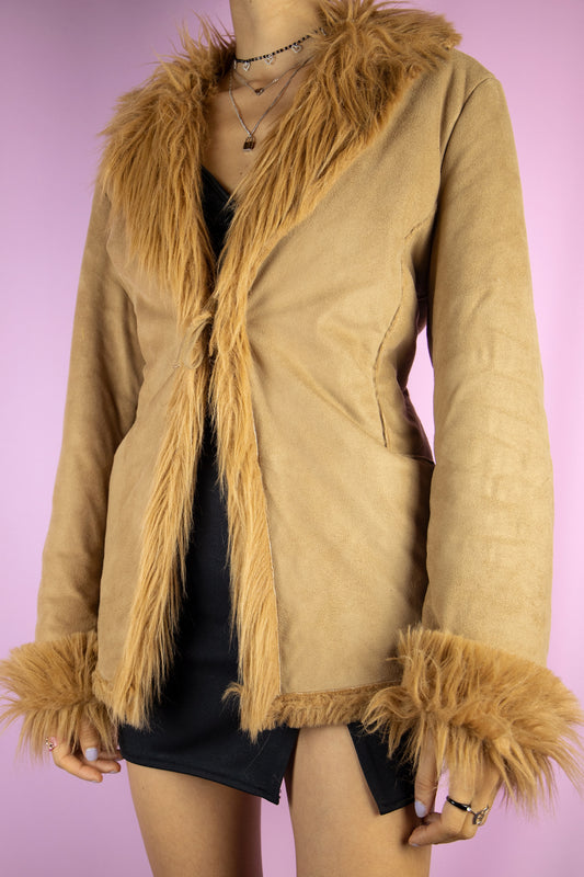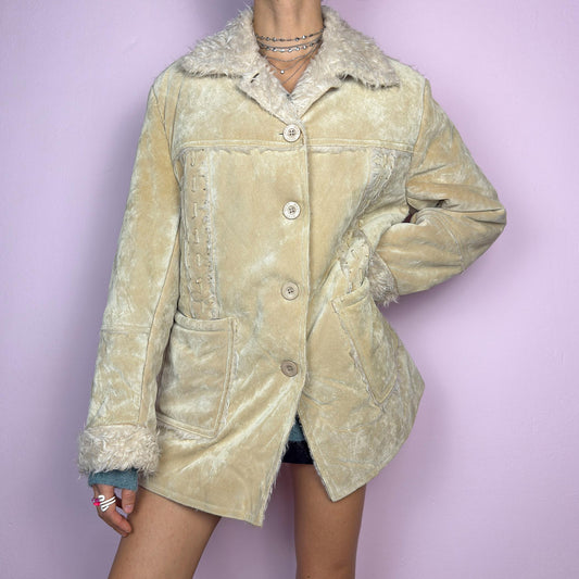 Vintage Y2K Beige Faux Fur Suede Penny Lane Jacket – Size L