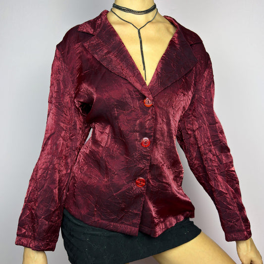 Vintage 90s Red Iridescent Crinkled Button Up Jacket – Size L