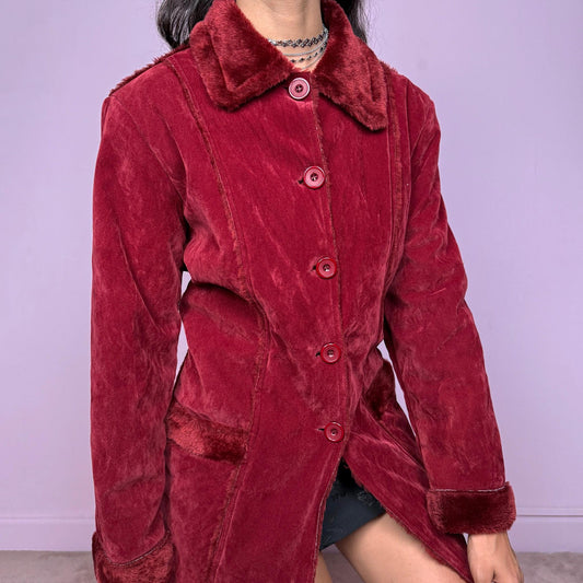Vintage Y2K Red Faux Fur Suede Penny Lane Coat – Size M