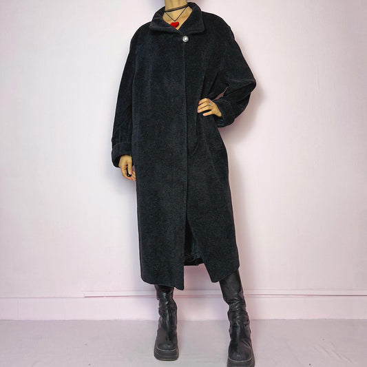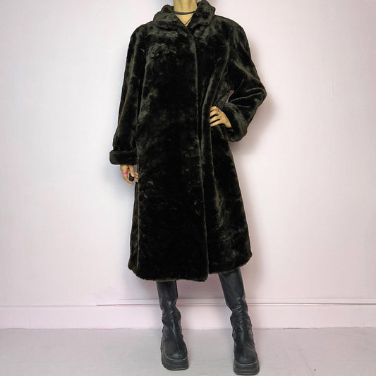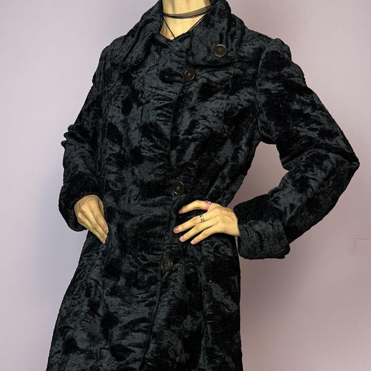 Vintage Y2K Black Faux Suede Fur Maxi Penny Lane Coat – Size L