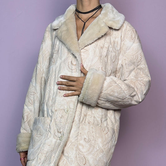 Vintage Y2K Cream Quilted Faux Fur Penny Lane Coat – Size L