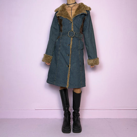 Vintage Y2K Denim Faux Fur Blue Penny Lane Coat – Size XS