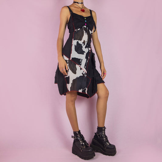 Vintage Y2K Black Deconstructed Abstract Panel Mini Dress – Size S