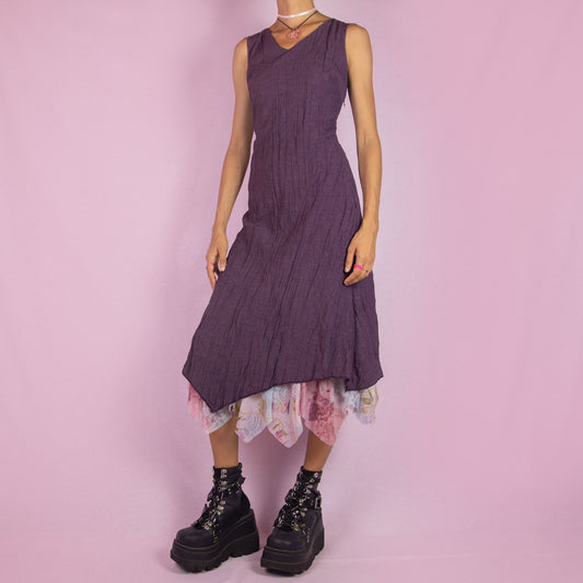 Vintage Y2K Purple Layered Asymmetric Midi Dress – Size M
