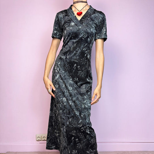 Vintage 90s Gray Velvet Midi Dress – Size M