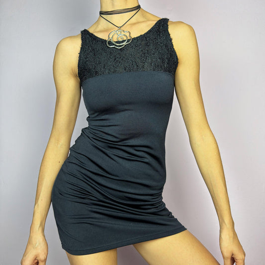 Vintage Y2K Black Lace Bodycon Mini Dress – Size XXS