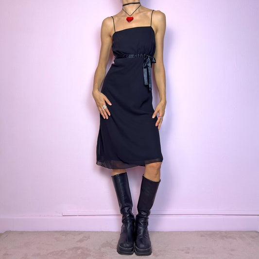 Vintage Y2K Black Empire Waist Slip Midi Dress – Size S