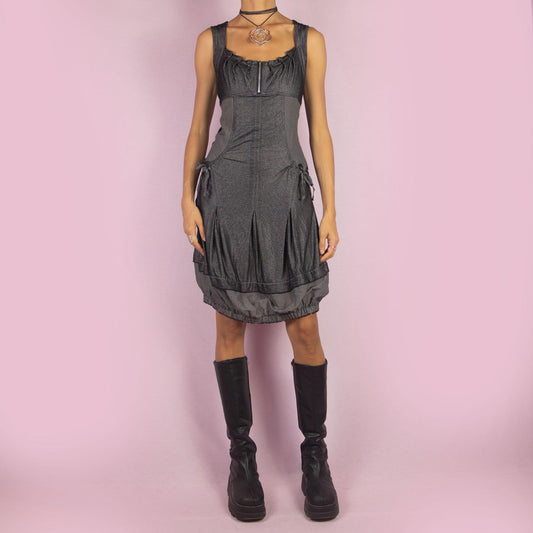 Vintage Y2K Gray Sleeveless Bubble Mini Dress – Size M