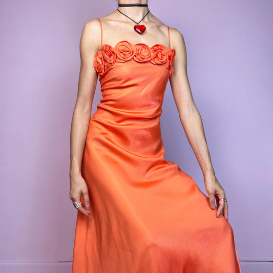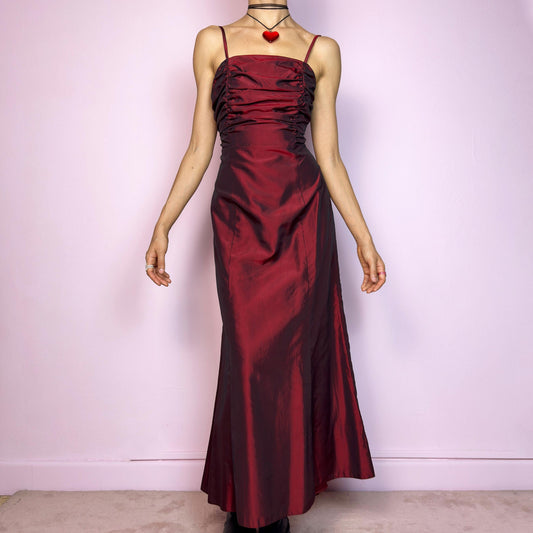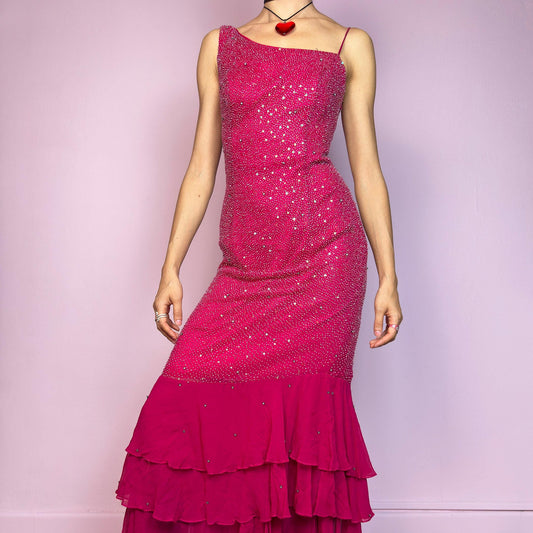 Vintage Y2K Pink Rhinestone Ruffle Midi Dress – Size S