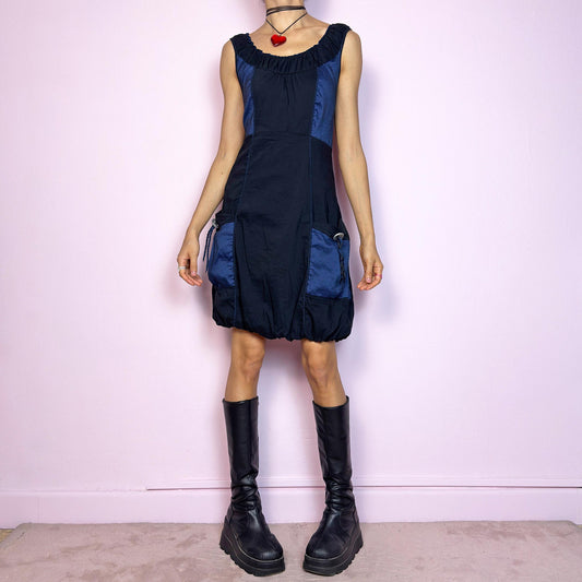 Vintage Y2K Navy Black Bubble Mini Dress – Size L