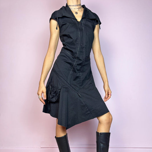 Vintage Y2K Black Techwear Asymmetric Midi Dress – Size M