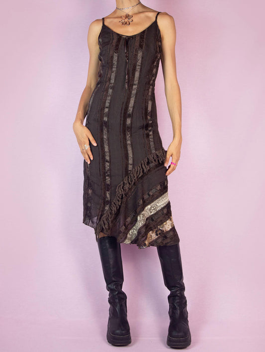 Vintage Y2K Mesh Art Print Layered Midi Dress – Size L