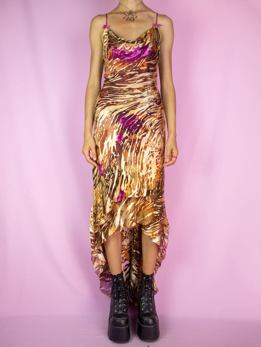 Vintage Y2K Purple Layered Asymmetric Midi Dress – Size M