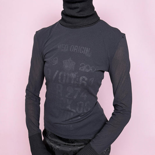 Vintage Y2K Black Mesh Sheer Turtleneck Top – Size S
