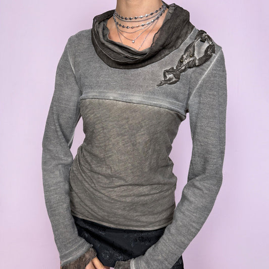 Vintage Y2K Khaki Long Sleeve Cowl Neck Top – Size M
