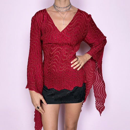 Vintage Y2K Red Sheer Burnout Bell Sleeve Blouse – Size M