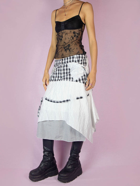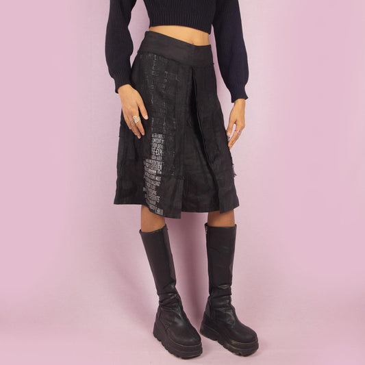 Vintage Y2K Black Layered Text Panel Midi Skirt – Size S