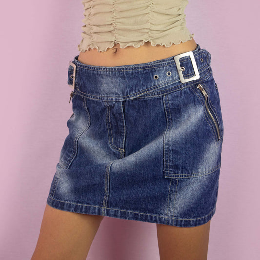 Vintage Y2K Denim Buckle Mid Rise Mini Skirt – Size M