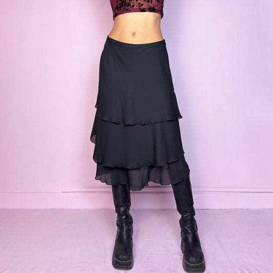 Vintage 90s Black Tiered Layered Midi Skirt – Size M