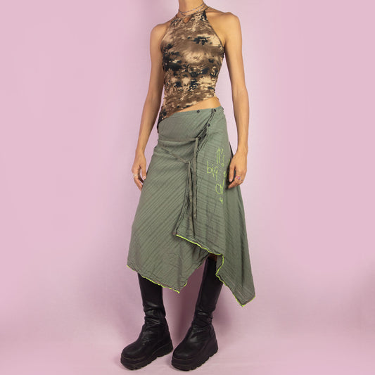 Vintage Y2K Khaki Linen Cotton Midi Skirt – Size L