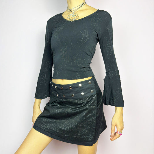 Vintage Y2K Black Wrap Floral Snap Button Mini Skirt – Size S