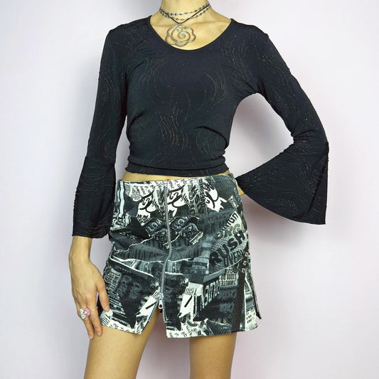 Vintage Y2K Newspaper Print Low Rise Mini Skirt – Size S