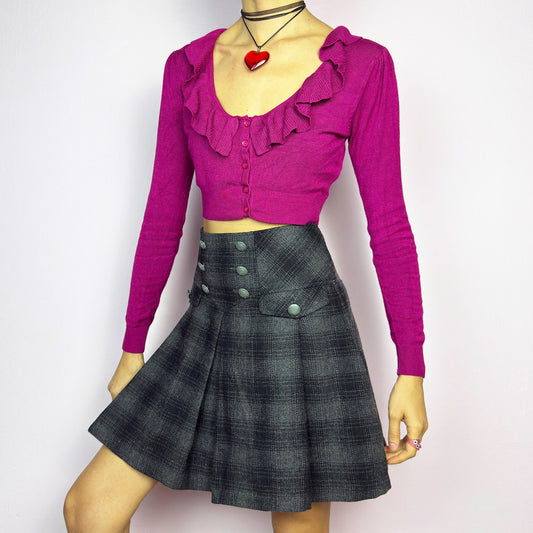 Vintage Y2K Gray Plaid Pleated Mini Skirt – Size M