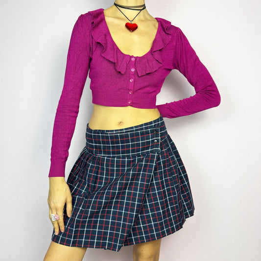 Vintage Y2K Plaid Pleated Navy Wrap Mini Skirt – Size L