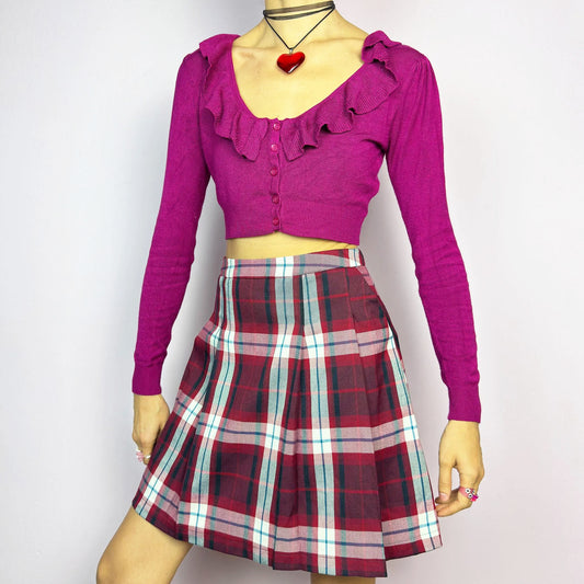 Vintage Y2K Red Plaid Pleated Mini Skirt – Size L