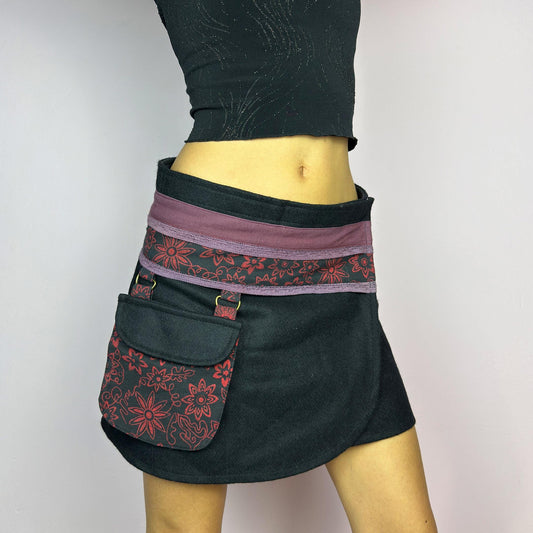 Vintage Y2K Black Pocket Wrap Mini Skirt – Size M