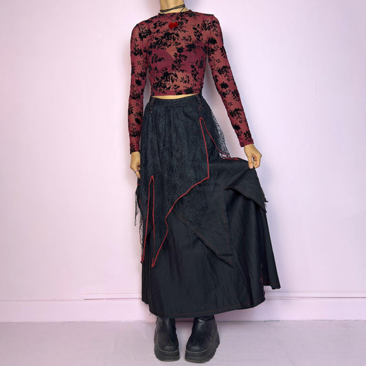 Vintage Y2K Black Layered Maxi Skirt – Size M