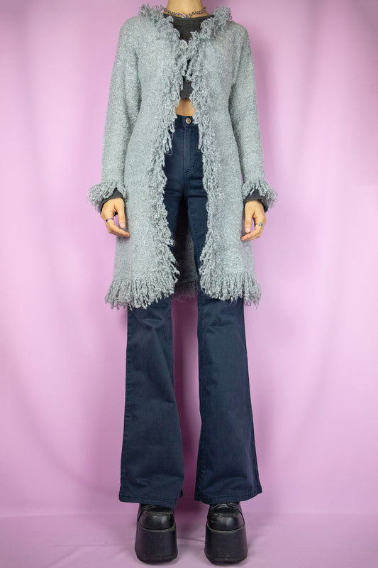 Vintage Y2K Beige Bubble Knit Long Cardigan - Size M