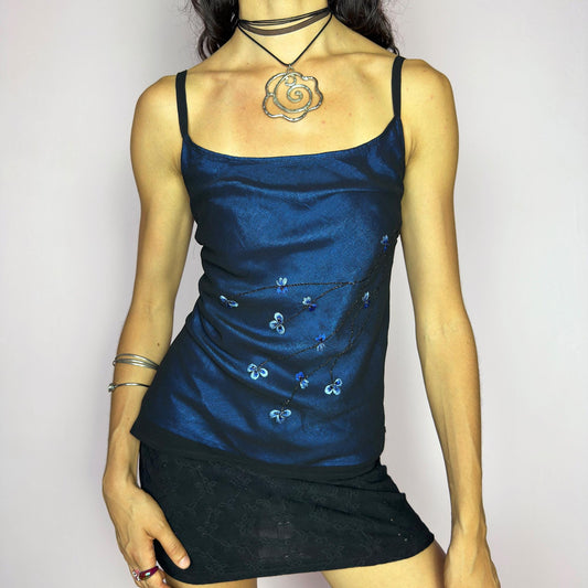 Vintage 90s Black Floral Embroidered Sheer Cami Top – Size M