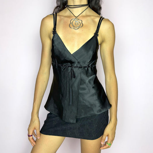 Vintage 90s Black Satin Wrap Cami Top – Size M