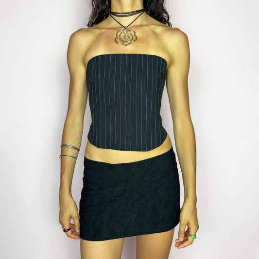 Vintage Y2K Black Strapless Pinstripe Corset Top – Size M