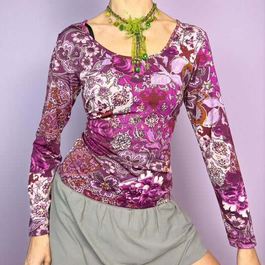 Vintage Y2K Floral Paisley Print Long Sleeve Top – Size M