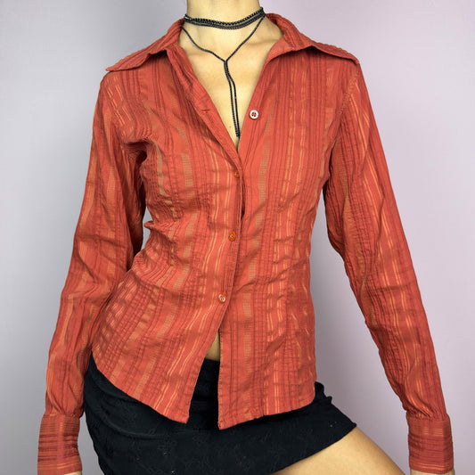 Vintage Y2K Orange Striped Textured Blouse – Size S