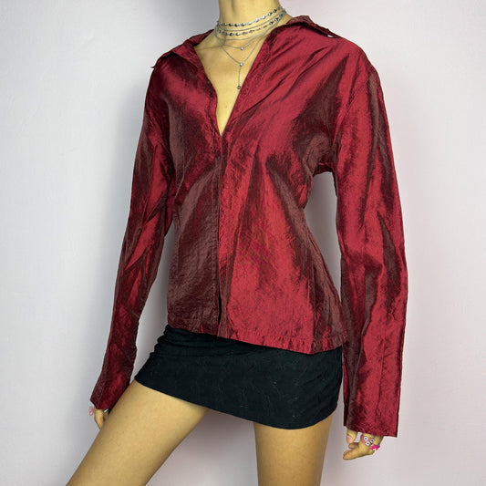 Vintage Y2K Purple Iridescent Shimmer Button Up Blouse – Size M