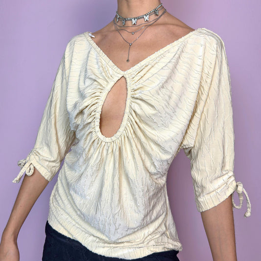 Vintage Y2K Cream Ruched Keyhole Top – Size L