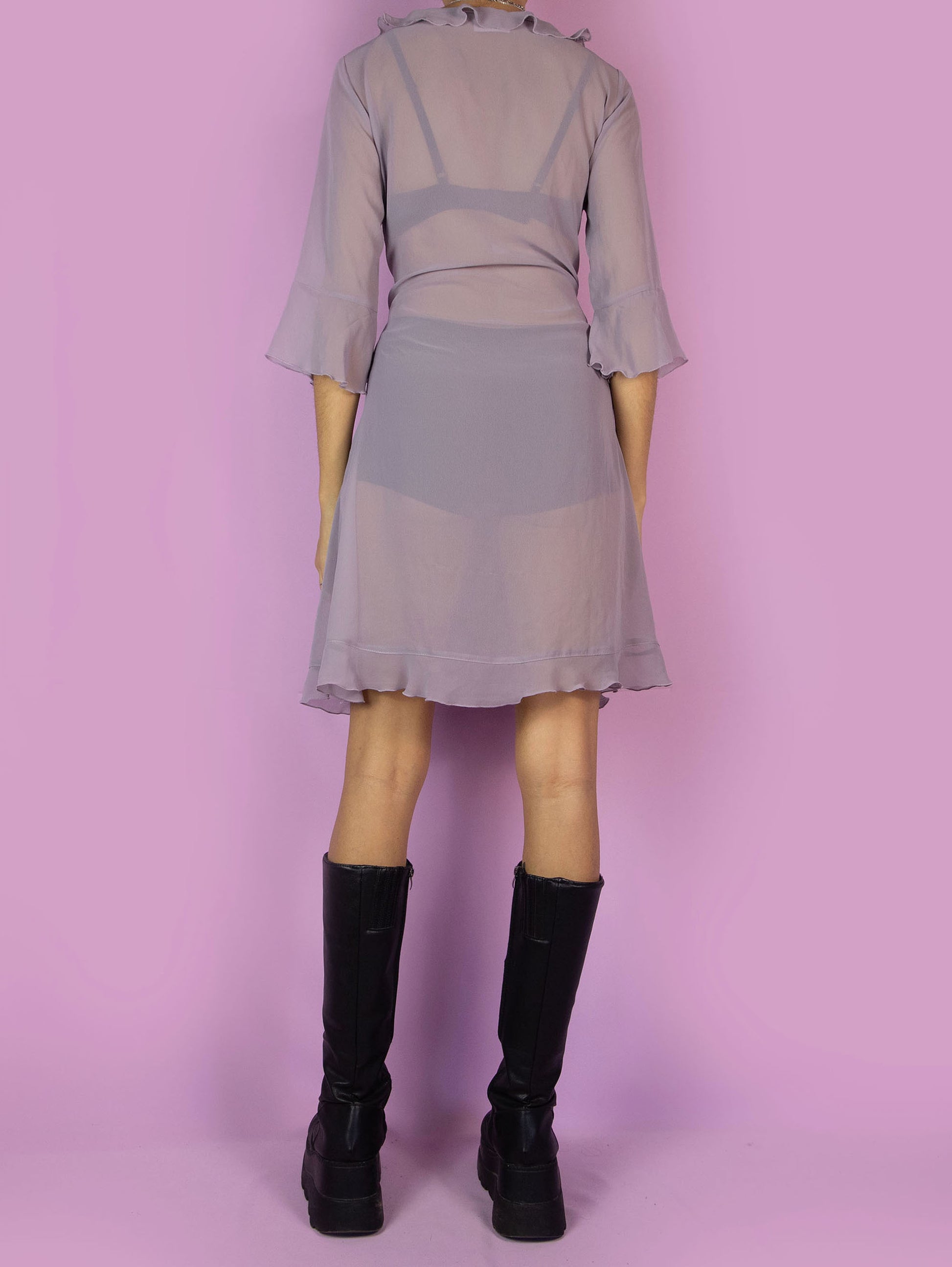 Vintage Y2K Purple Sheer Wrap Mini Dress - Size M
